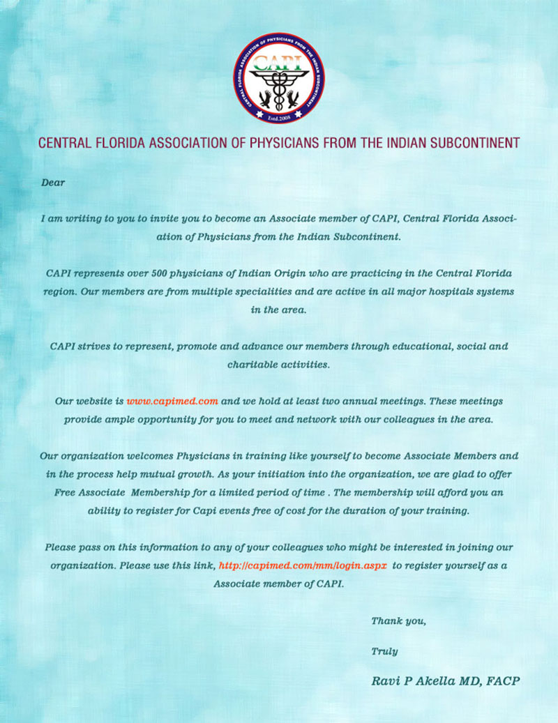 Central Florida association of physicians from the Indian subcontinent